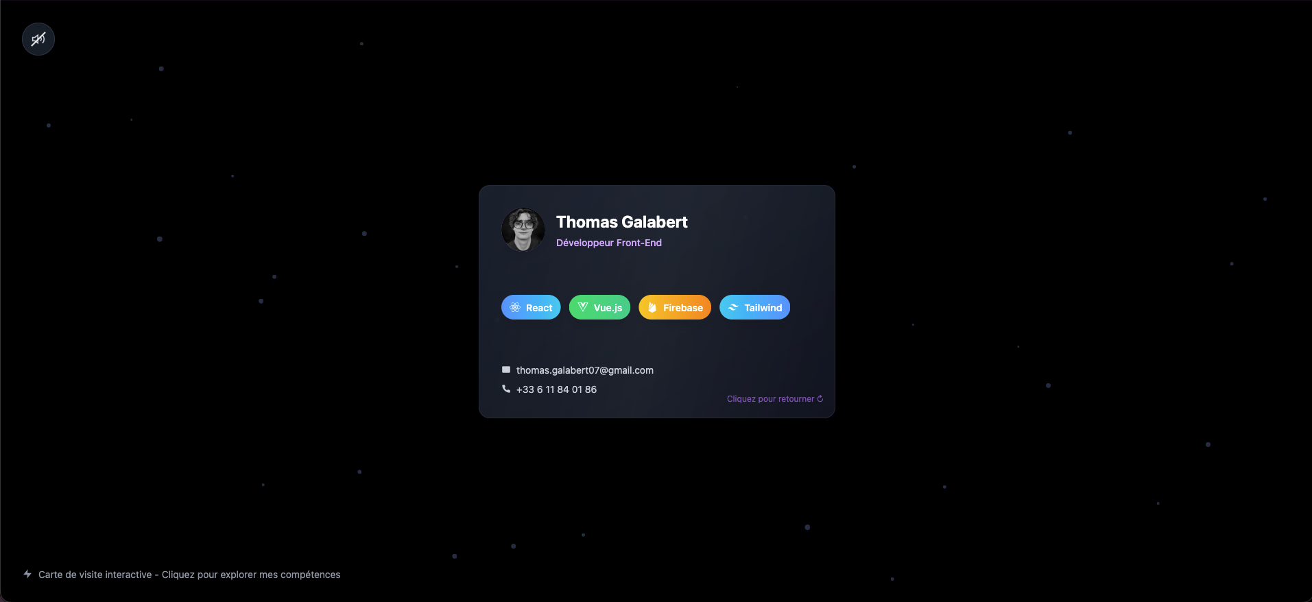 Ma carte de visite interactive, permettant de présenter en un instant mes informations essentielles : les technologies avec lesquelles je travaille régulièrement ainsi que mes coordonnées.Voir plus